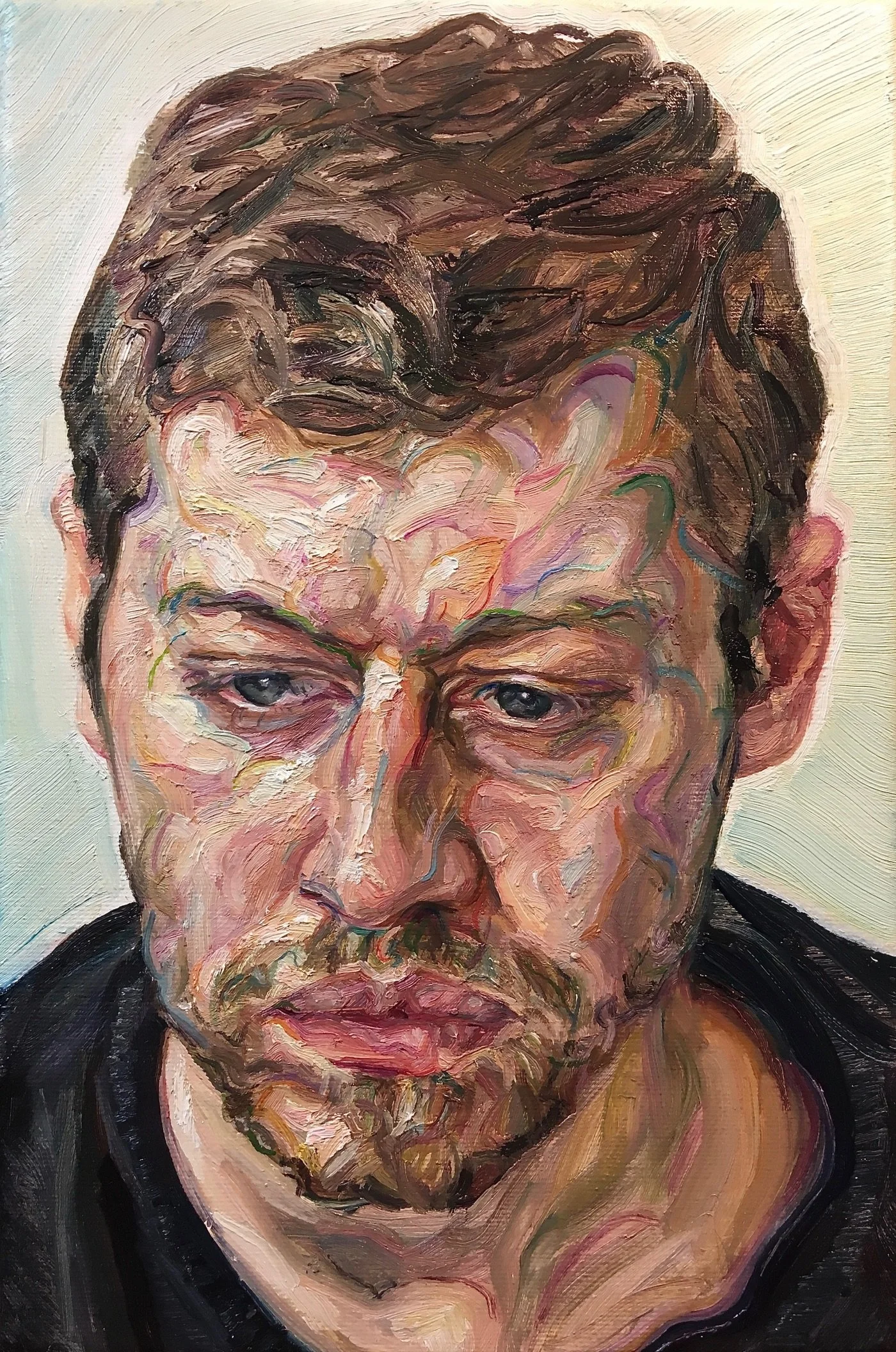 Owain Hunt approaches portraiture as a vehicle for exploring human connection and temporal experience. His practice centres on sustained observational painting sessions that transform traditional portraiture into shared experiences of presence and contemplation. His subjects emerge from a diverse network of personal relationships, including family members, longstanding friends, and carefully selected new acquaintances.